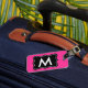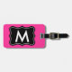 Étiquette rose et noire de bagage. Personnalisez le monogramme. Lettre nommée de Personalizable pour la conception personnalisable de sacs et de valises | de voyage pour des voyageurs. Rose ou toute couleur faite sur commande d'arrière - plan. Idée élégante mignonne de cadeau pour des femmes et des filles.