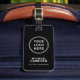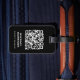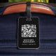 Marque de bagage noire professionnelle moderne avec le logo de votre entreprise ou de votre organisation et le code QR. Ajoutez votre nom et votre titre dans une simple typographie blanche.