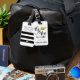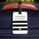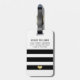 Les sacs élégants pour bagages de voyage pour le nouveau M et Mme sont dotés d'un design de script moderne avec des accents de coeur et de défilement, des rayures noir et blanc en gras et du texte personnalisé sur les côtés avant et arrière. Personnalisez avec votre nom et vos coordonnées personnelles.