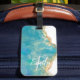 Étiquette À Bagage Marbre d'Agate turquoise et blanc Nom Abstrait Mon
