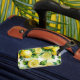 Étiquette À Bagage Mariage moderne en bleu et citron avec écriture fl