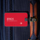 Un design élégant et personnalisé avec l'image graphique d'un petit avion blanc de couleur arrière - plan rouge chaud et chaud, pour identifier vos effets personnels lors d'un voyage à travers le monde