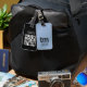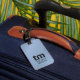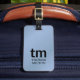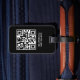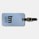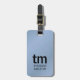 Étiquette À Bagage Mini Faux Métal Bleu Noir Gras Monogramme QR