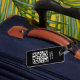 Design moderne entièrement personnalisable étiquette de bagage avec monogramme audacieux, texture bleu et noir arrière - plan. Ajoutez votre code QR avec vos coordonnées. Les coordonnées instantanément accessibles signifient que votre sac connaît toujours son chemin de retour :)