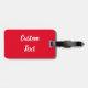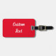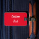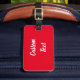 Cette étiquette de bagage rouge vif contient du texte en écriture blanche. Le texte peut être modifié ou supprimé.