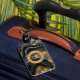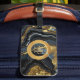 Travel in sophisticated style with this glamorous bag accessory featuring a stunning abstract design. The artwork captures the essence of luxury with a mesmerizing blend of black, deep charcoal, and swirling faux metallic gold veins, mimicking the organic beauty of fluid ink, agate, and marble stone.