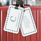 Étiquette À Bagage Modern Monogram Navy Blue Double Border