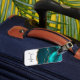 Une étiquette de bagage au style abstrait. Illustration de la pierre d'agate turquoise avec des couches de nuances variées. Un faux ruban de parties scintillant d'or court entre les couches de couleur. Design moderne et élégant.