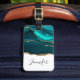 Étiquette À Bagage Moderne Design Turquoise Agate & Gold Ribbon sur B