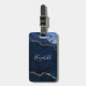 Elégant moderne Aquarelle tendance Bleu et Or Marbre Agate Geode Bagage Tag personnalisé avec votre nom dans un script élégant.