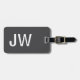 Cool élégant bagage entièrement personnalisable étiquette avec arrière - plan gris foncé et monogramme audacieux. Vous pouvez ajouter du code QR avec vos coordonnées. Recherchez vos bagages de façon professionnelle, faites de chaque voyage un voyage plus fluide avec une étiquette de bagage personnalisée.