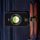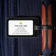 GREENS ARE GOOD FORE YOU! Travel in style with this double-sided golf luggage tag featuring curved white text encircling a red flag on stylized golf greens—all set against a solid black background. The front includes space for three white monogrammed initials, while the back mirrors the design and offers editable fields for your name, phone, address, and email—tastefully accented with a matching golf flag above the contact info.