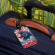 “Guarding (Your Name’s) Bag”. Travel is always more fun with a luggage tag calling your name. This funny, cool, striking, unique lizard tag will help keep your bag safe as well as infuse it with ample personality. A retro vintage, turquoise blue lizard monster appears over turquoise waves along with red and white sun graphics. Your name, address and phone number are on the back. Makes a fun and bold statement every time you use it. Makes a great gift for someone special, even yourself!