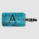Étiquette À Bagage Monogramme à étincelles bleu turquoise