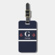 Étiquette À Bagage Monogramme à rayures blanches de la marine nautiqu