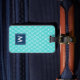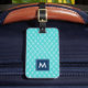 Voyagez dans le style avec cette étiquette monogramme avec un motif abstrait en ligne turquoise avec un centre bleu à l'avant et un côté bleu assorti à l'arrière. Personnalisez-le en remplaçant le texte de l'espace réservé. Pour plus d'options comme changer la police et sa taille/couleur ou l'espacement entre les lettres cliquez sur le bouton "Personnaliser". *Veuillez noter que le filigrane Zazzle qui apparaît dans l'aperçu du zoom n'apparaîtra pas sur le produit imprimé final. ©Bois de rose et agrumes