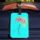Étiquette À Bagage Monogramme Aqua bleu/ Turquoise et fleuri