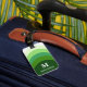 Cette étiquette élégante à rayures vertes vous aidera à repérer votre sac dans une foule. Il est muni d'un monogramme à l'avant et d'une courroie pour que vous puissiez l'attacher à votre poignée de bagage. Son design fonctionnel et branché en fait un lieu idéal pour les bagages de voyageurs ou les bagages à main.