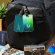 Conception personnalisable élégante moderne d'étiquette de bagage avec l'arrière - plan de vert de texture et votre monogramme blanc audacieux.