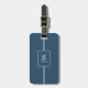 Marque de bagage élégante et entièrement personnalisable cool avec rectangle bleu arrière - plan/blanc et lignes/monogramme gras. Vous pouvez ajouter du code QR avec vos coordonnées. Recherchez vos bagages de façon professionnelle, faites de chaque voyage un voyage plus fluide avec une étiquette de bagage personnalisée.