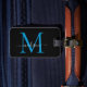 Étiquette À Bagage Monogramme bleu océan noir Nom du script élégant