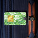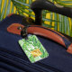 Étiquette de bagage à thème tropical. Veuillez noter que les détails en feuille d'or sont simulés.