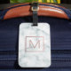 Étiquette À Bagage Monogramme d'or rose sur pierre blanche