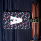 Balise de bagage Monogramme de l'éclair rétro Ce design rétro est composé d'un arrière - plan bleu foncé avec des boulons d'éclairage blancs aux accents turquoises et roses. Personnalisez la balise bagage avec votre initiale ou modifiez le texte en votre propre message personnel. Visitez notre boutique pour la coordination des accessoires.