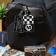 bagage monogrammaire de style rétro noir et blanc avec sangle en cuir