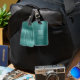 Tag de bagage en métal brossé couleur vert émeraude.