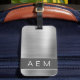 Étiquette À Bagage Monogramme en métal brossé argent Nom et initiale