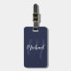 Étiquette À Bagage Monogramme et nom personnalisé moderne Navy Blue