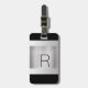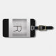 Étiquette À Bagage Monogramme et nom, Texte gris noir, Argent brossé