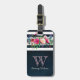 Éloignez-vous de la foule avec cette étiquette marine chic avec un arrière - plan dénudé de partie marine, un joli spray à fleurs, votre nom, vos initiales et coordonnées au verso.