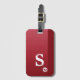 Monogram Girly Red Heart Simple Modern Chic Luggage Tag présente votre initiale personnalisée sur un arrière - plan à l'ombre rouge accentué par un coeur d'amour mignon. Personnalisez en modifiant le texte dans la zone de texte fournie. Fait pour vous par Evco Studio www.zazzle.com/store/evcostudio