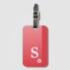 Monogram Girly Red Heart Simple Modern Chic Luggage Tags présente votre initiale personnalisée sur un arrière - plan à l'ombre rouge accentué par un coeur d'amour mignon. Personnalisez en modifiant le texte dans la zone de texte fournie. Fait pour vous par Evco Studio www.zazzle.com/store/evcostudio