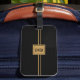 Étiquette masculine de bagage dans le noir avec des rayures d'or et bloc pour vos initiales. Personnalisez avec vos propres initiales.