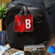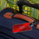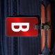Modifiez facilement l'initiale du monogramme sur l'avant et le nom et l'adresse à l'arrière de l'étiquette à bagages rouges.