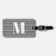monogramme moderne rayures noir et blanc personnalisé lettre initiale personnalisée élégant étiquette de bagages. Lettre blanche personnalisée, noir et blanc rayures motif.