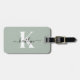 Cette étiquette simple et élégante sauge verte avec votre prénom dans une police de script tendance en noir et votre première initiale dans une police casquette moderne en blanc d'un côté et votre nom, adresse et numéro de téléphone de l'autre serait fabuleux sur vos valises. C'est design, tendance et pourtant très classique.