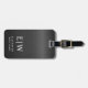 Étiquette À Bagage Monogramme Noir brossé métal élégant