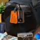 Étiquette À Bagage Monogramme Noir, Orange, Barcode Bande circulaire