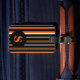 Marque bagage avec bandes de code-barres noir, orange et blanc avec monogramme sur un cercle noir. Personnalisez avec vos informations d'origine, de nom et d'adresse monogramme en utilisant les modèles faciles. La couleur de police, le style de police et la taille de police sont personnalisables.