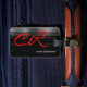 Un design moderne et attrayant avec un monogramme rouge sur un arrière - plan noir et gris. Vous pouvez l'utiliser sur de beaux voyages en ajoutant les initiales de votre nom et vos informations personnelles.