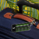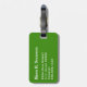 Marque de bagage avec bandes de code-barres noir, vert et blanc, initiale(s) monogramme(s)/nom sur un cadre monogramme de bande noire, nom et adresse sur un arrière - plan vert. Personnalisez avec vos initiales monogrammes/nom, nom et adresse en utilisant les modèles faciles. La couleur de police, le style de police, la taille de police et la couleur verte de l'arrière - plan sont personnalisables.