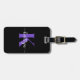 Cette étiquette simple et élégante de bagage noir avec votre prénom dans une police de script tendance en blanc et votre première initiale dans une police casquette moderne en violet d'un côté et votre nom, adresse et numéro de téléphone de l'autre serait fabuleux sur vos valises. C'est design, tendance et pourtant très classique.