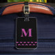 Personnalisez cette étiquette de bagage avec votre propre initiale sur le devant et vos informations personnelles sur le dos. Les deux côtés ont une couleur arrière - plan noire avec du texte violet. L'avant a une conception de triangles violets dans une rangée vers le bas de l'étiquette.