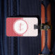 Donnez à votre style de voyage un look girly contemporain avec cette étiquette à bagages rose et blanc tendance avec un motif à pois rond mod cercle. N'importe quelle fille moderne aimerait avoir son nom et monogramme initial personnalisé sur ce design preppy et moderne.