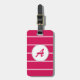 Étiquette rayée blanche rose girly à la mode de bagage avec votre monogramme. Facile à customiser.