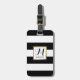 Étiquette À Bagage Monogramme rayé noir et blanc personnalisé d'or